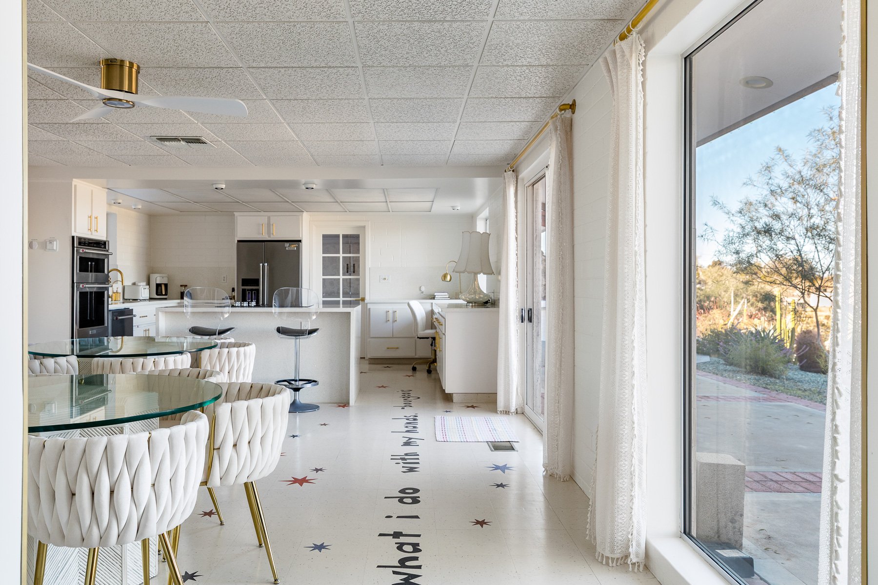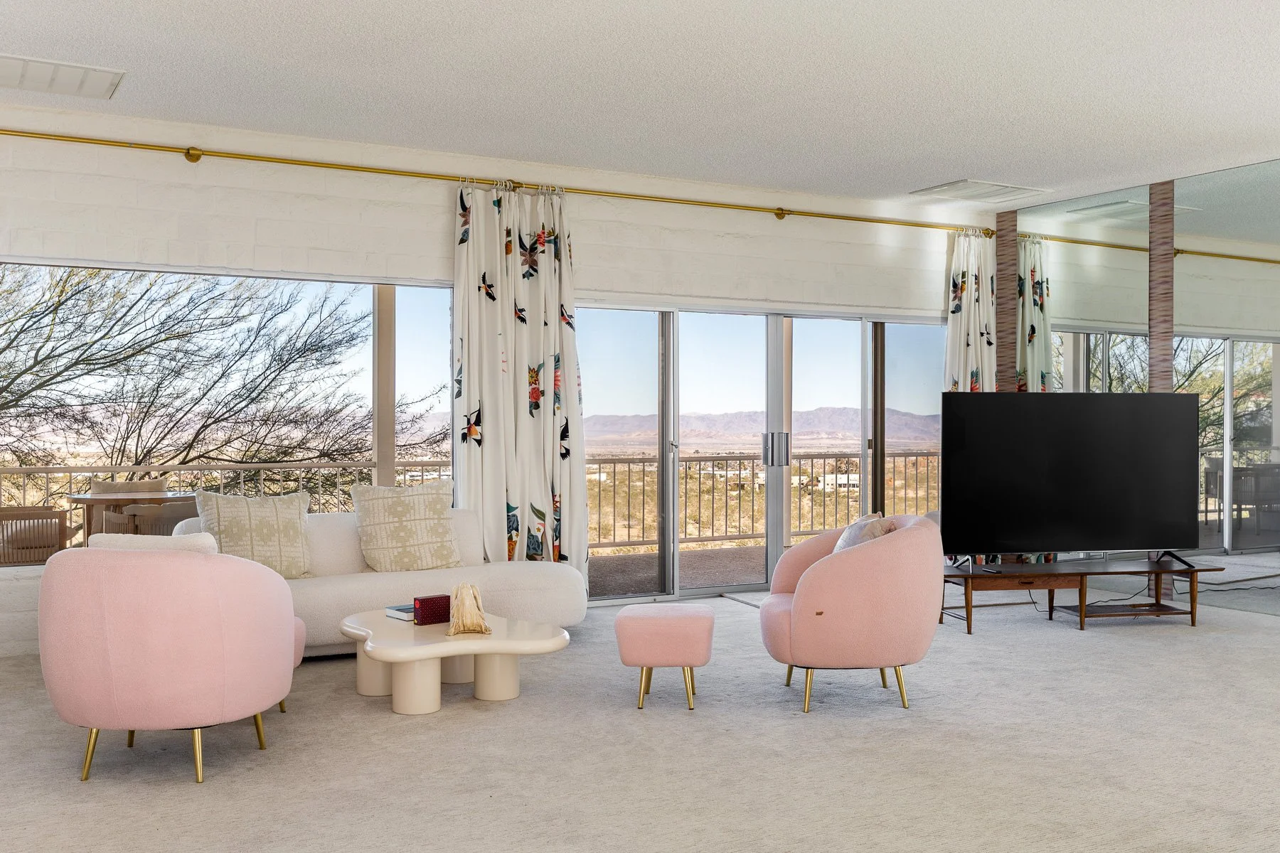Come escape in this cavernous home with incredible views and a nod to 70's Joshua Tree.