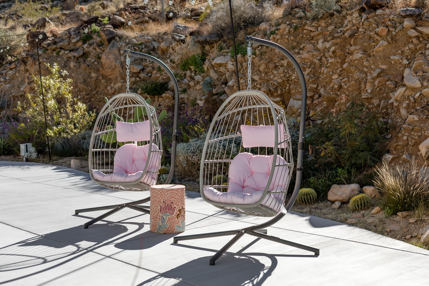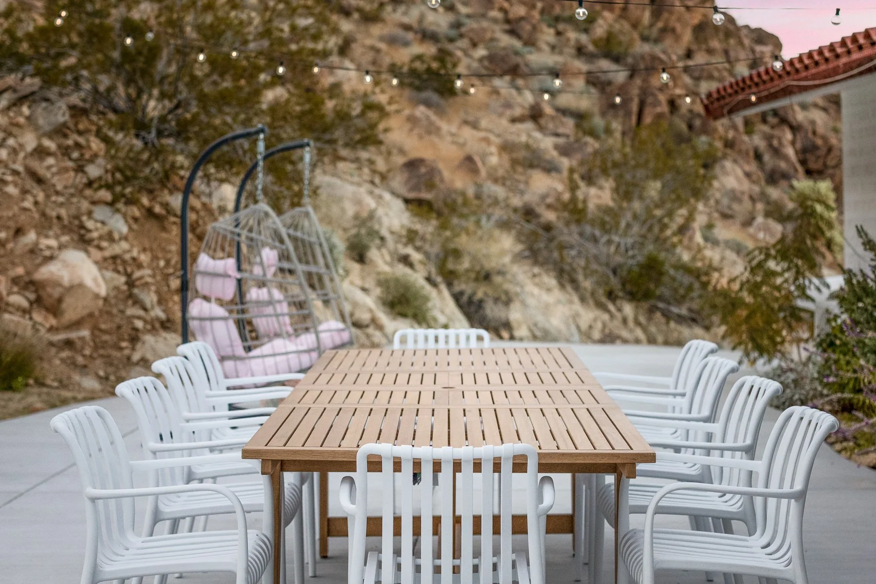 Nestled against the rocks in 29 Palms, Zainaland is a stunning, 3 bedroom, 3.5 bathroom unique estate. Live outdoors with sweeping views, a hot tub, wood burning firepit and outdoor dining space. Inside, relive Joshua Tree in the 70's with this captivating home full of original details and eclectic decor. Cozy up to the bar in the gigantic living room and toast to the desert in this wildly exotic, but elegant home.